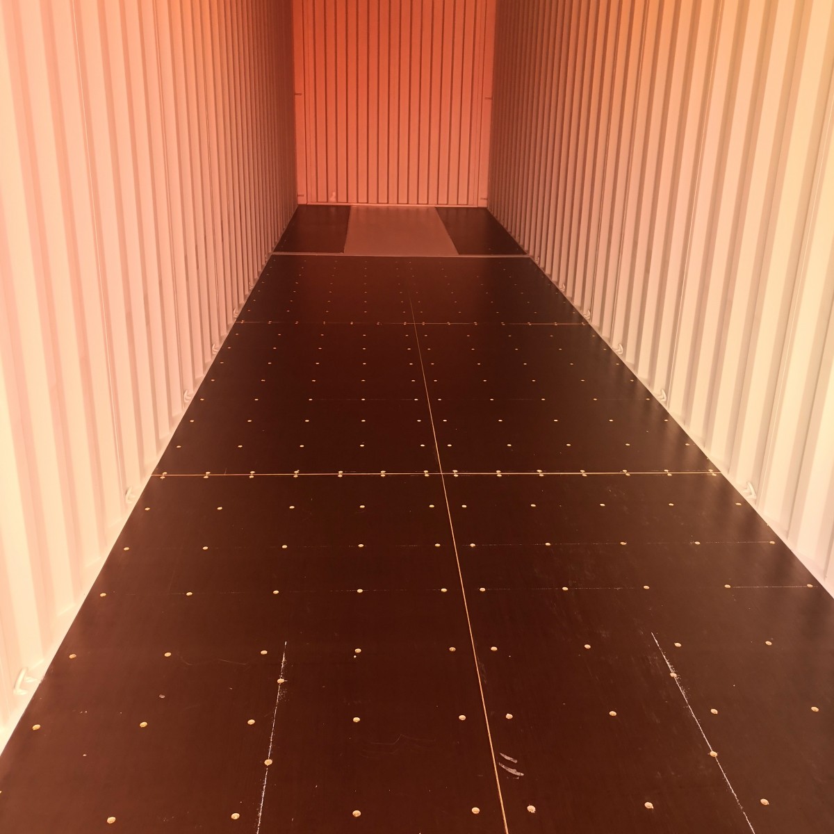 用于集裝箱內部底板。一般由高強度的竹簾搭配優(yōu)質的木皮(橡木、桉木、櫸木),按一定的順序組坯,經(jīng)高溫高壓壓制成型,集裝箱底板膠水使用濃度為普通竹膠板的1.5倍以上,其板面平整、內在強度高,抗壓抗腐蝕,單張板材能承載6-7.3噸的重量。